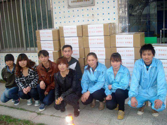 4月20日早8点,四川雅安发生7级地震,消息传来后,乌鲁木齐市米东区鸿达五交化经销部第一时间做出反应,公司旗下以生产线缆、灯具和汽车售后服务产品为主营的东立公司立即组织员工加班加点,赶制灾区可能急需的照明设备LED头灯和手电筒,用最快的速度发往灾区,无偿支援灾区救援工作。